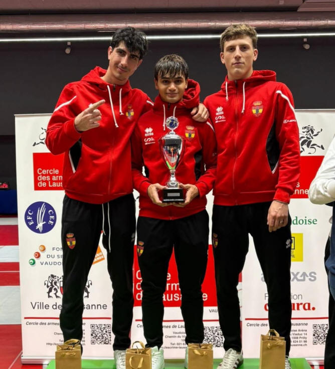 Brillante actuación española en el Circuito Europeo Sub-23 de Espada celebrado en Lausanne La delegación española firmó un fin de semana excepcional en el Circuito Europeo Sub23 de Espada Masculina y Femenina, disputado los días 15 y 16 de noviembre en Lausanne, logrando un total de cuatro medallas entre las pruebas individuales y por equipos. Bronce para Jaime de la Cal en la prueba individualEn la competición de Espada Masculina Individual, el madrileño Jaime de la Cal subió al podio tras una destacada actuación que le permitió conquistar la medalla de bronce, tras perder con el suizo Sven Vineis, que a la postre sería el vencedor del torneo ganando a la tirador canario Diego Rodríguez que consiguió la medalla de plata. Plata para el equipo femeninoEl conjunto español de Espada Femenina logró una magnífica medalla de plata tras una competición de alto nivel. El equipo estuvo formado por las madrileñas Lucía Abajo, Silvia Gómez, Candela Lozano y la tiradora catalana Daniela Pinyol, quienes no pudieron superar el equipo ucraniano en la final. Oro para el equipo masculinoLa actuación más destacada llegó en la prueba por equipos masculinos, donde España conquistó la medalla de oro. El equipo estuvo compuesto por los madrileños Rayan Rami, Álvaro Fernández, Jaime de la Cal y el burgalés Miguel Martín. Los tiradores firmaron una competición impecable, imponiéndose a todos sus rivales con autoridad y proclamándose campeones del torneo. Estos resultados confirman el excelente momento de la esgrima española en categorías de formación y refuerzan el papel de nuestros jóvenes tiradores en el panorama europeo.![]() ![]() |